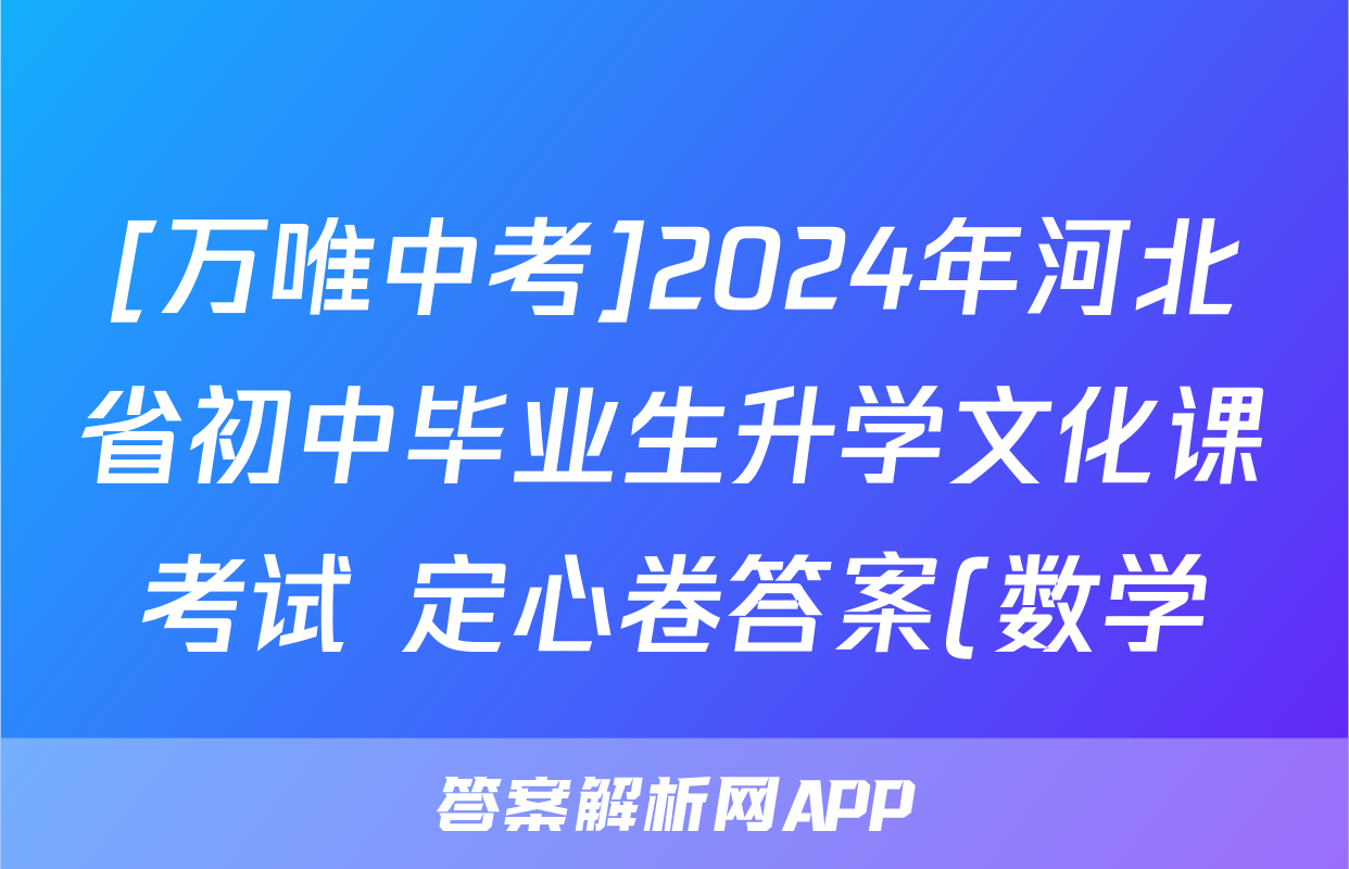 [万唯中考]2024年河北省初中毕业生升学文化课考试 定心卷答案(数学)正在持续更新,目前答案城为大家整理了相关试题及答案,供大家查缺补漏,高效提升成绩。