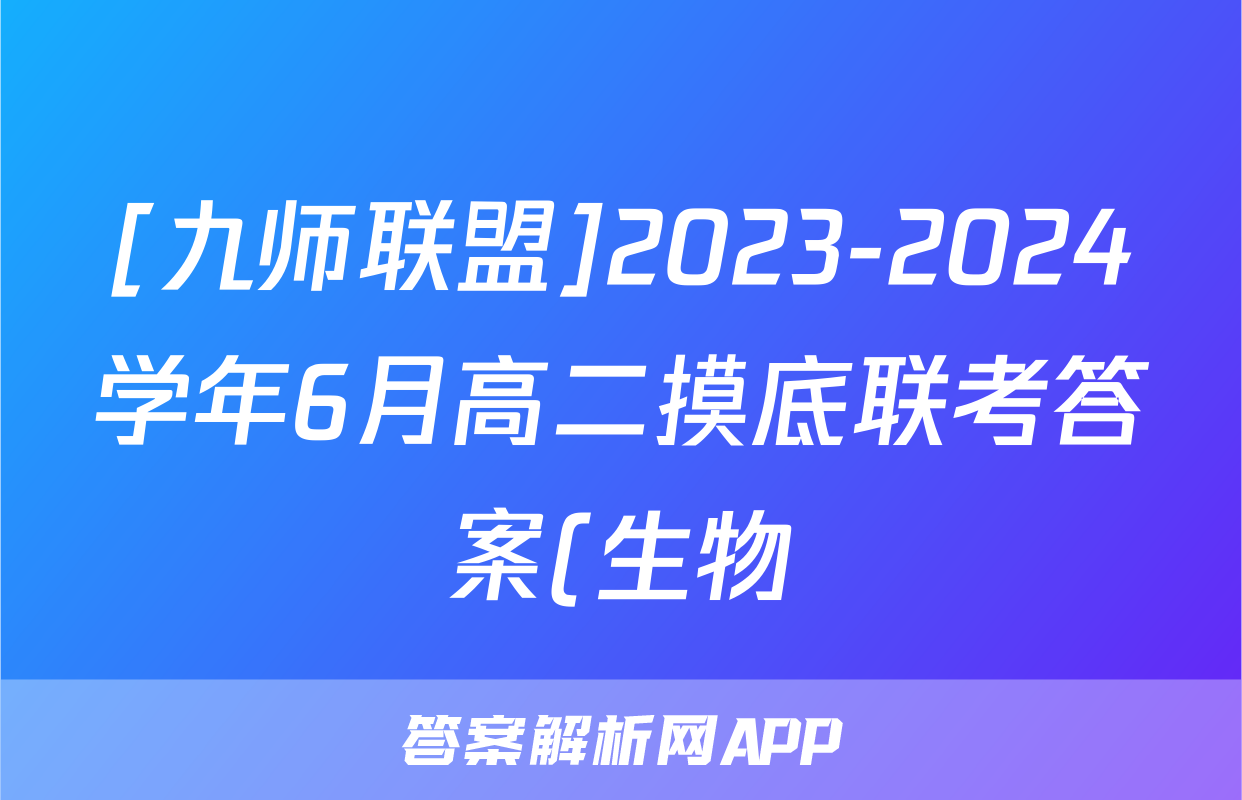 [九师联盟]2023-2024学年6月高二摸底联考答案(生物)正在持续更新,目前答案城为大家整理了相关试题及答案,供大家查缺补漏,高效提升成绩。
