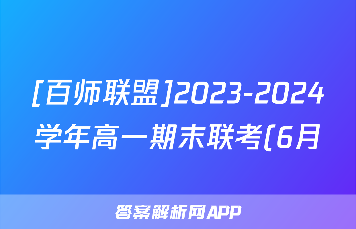 [百师联盟]2023-2024学年高一期末联考(6月)试题(数学)正在持续更新,目前答案城为大家整理了相关试题及答案,供大家查缺补漏,高效提升成绩。