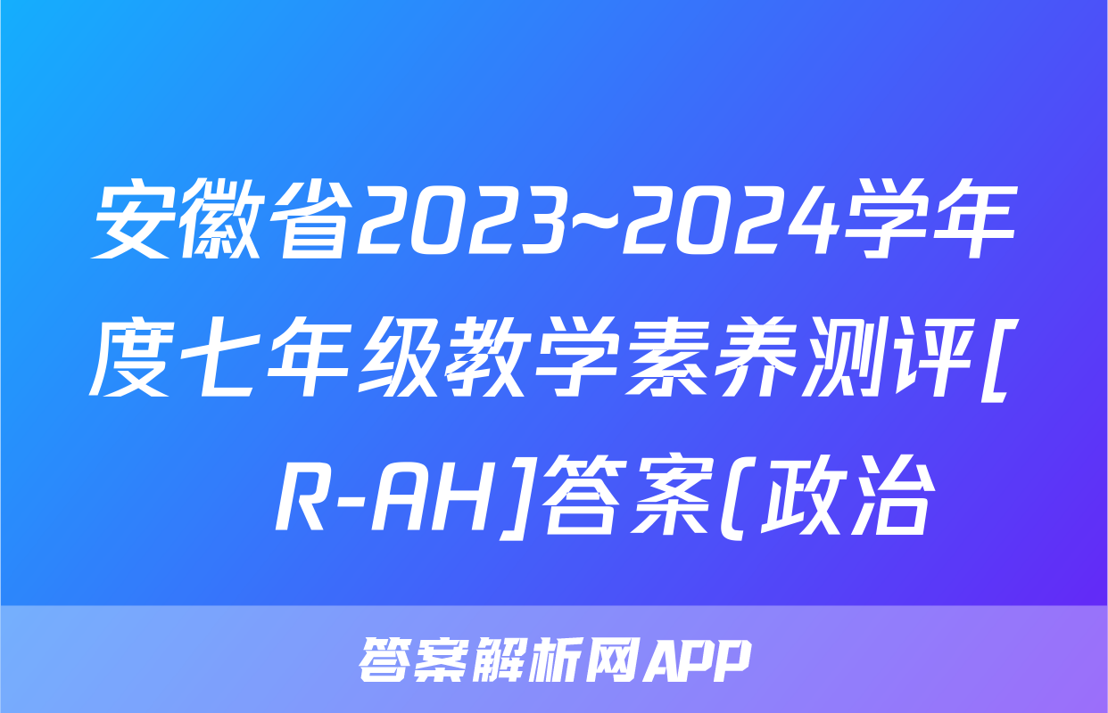 安徽省2023~2024学年度七年级教学素养测评[☐R-AH]答案(政治)正在持续更新,目前答案城为大家整理了相关试题及答案,供大家查缺补漏,高效提升成绩。