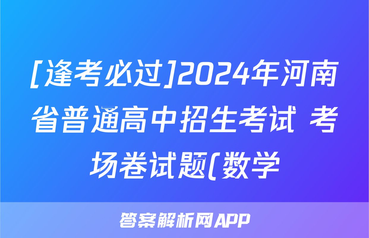 [逢考必过]2024年河南省普通高中招生考试 考场卷试题(数学)正在持续更新,目前答案城为大家整理了相关试题及答案,供大家查缺补漏,高效提升成绩。
