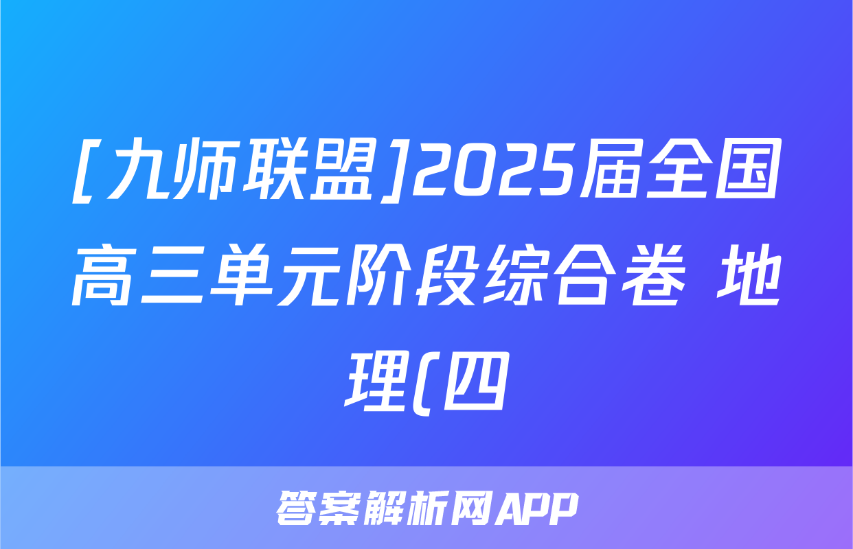 [九师联盟]2025届全国高三单元阶段综合卷 地理(四)4答案正在持续更新,目前答案城为大家整理了相关试题及答案,供大家查缺补漏,高效提升成绩。
