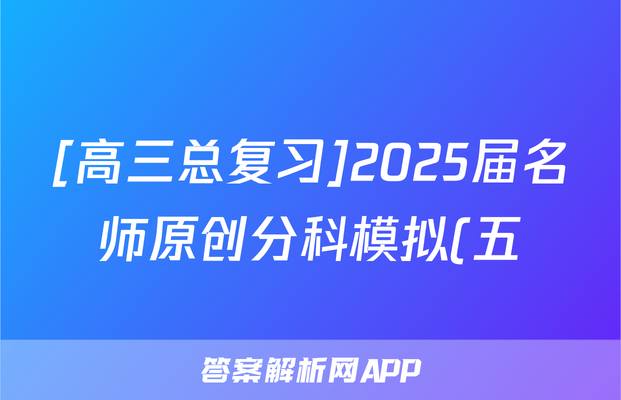 [高三总复习]2025届名师原创分科模拟(五)5化学(XS5)答案正在持续更新,目前答案城为大家整理了相关试题及答案,供大家查缺补漏,高效提升成绩。
