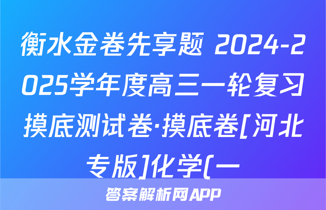 衡水金卷先享题 2024-2025学年度高三一轮复习摸底测试卷·摸底卷[河北专版]化学(一)1试题正在持续更新,目前答案城为大家整理了相关试题及答案,供大家查缺补漏,高效提升成绩。