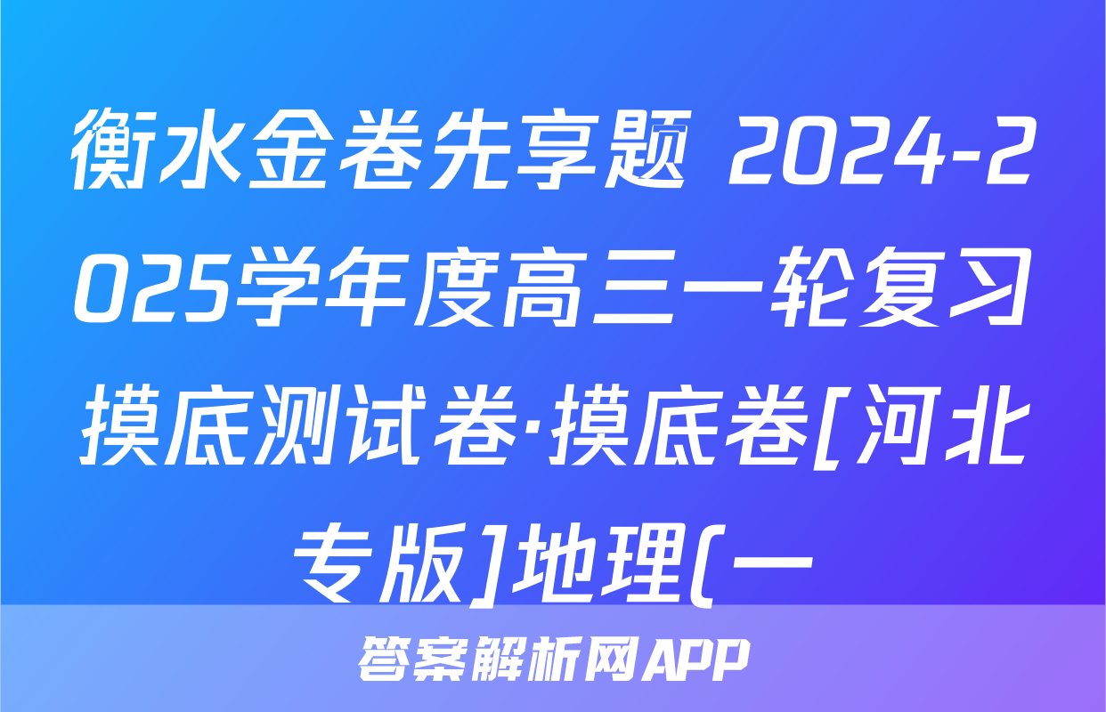 衡水金卷先享题 2024-2025学年度高三一轮复习摸底测试卷·摸底卷[河北专版]地理(一)1答案正在持续更新,目前答案城为大家整理了相关试题及答案,供大家查缺补漏,高效提升成绩。