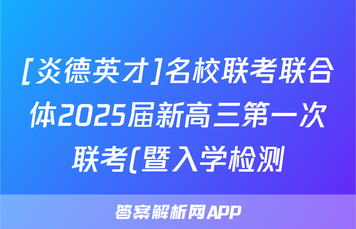[炎德英才]名校联考联合体2025届新高三第一次联考(暨入学检测)化学试题正在持续更新,目前答案城为大家整理了相关试题及答案,供大家查缺补漏,高效提升成绩。