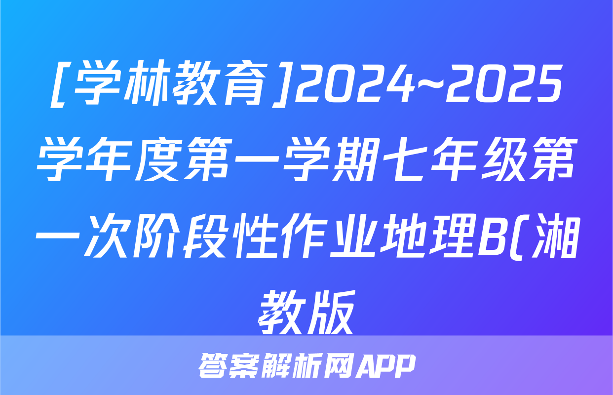 [学林教育]2024~2025学年度第一学期七年级第一次阶段性作业地理B(湘教版)答案正在持续更新,目前答案城为大家整理了相关试题及答案,供大家查缺补漏,高效提升成绩。
