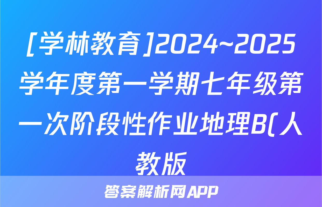 [学林教育]2024~2025学年度第一学期七年级第一次阶段性作业地理B(人教版)试题正在持续更新,目前答案城为大家整理了相关试题及答案,供大家查缺补漏,高效提升成绩。