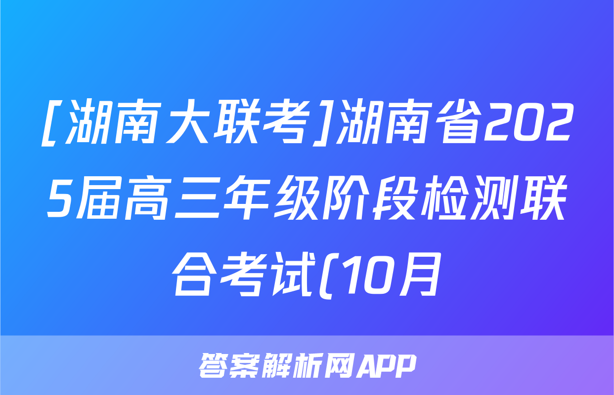 [湖南大联考]湖南省2025届高三年级阶段检测联合考试(10月)英语试题正在持续更新,目前答案城为大家整理了相关试题及答案,供大家查缺补漏,高效提升成绩。