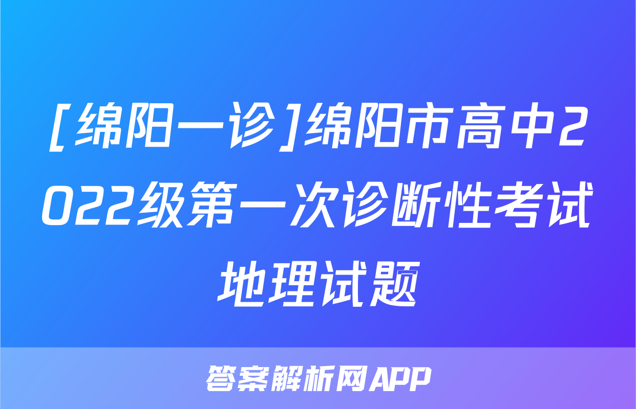 [绵阳一诊]绵阳市高中2022级第一次诊断性考试地理试题正在持续更新,目前答案城为大家整理了相关试题及答案,供大家查缺补漏,高效提升成绩。